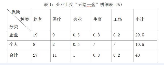 另外,大病保險(xiǎn)10月/人?月,住房公積金20~24%(個(gè)人與單位各交一半)。也就是不考慮大病保險(xiǎn)和住房公積金,“五險(xiǎn)”需繳納工資總額的40%。